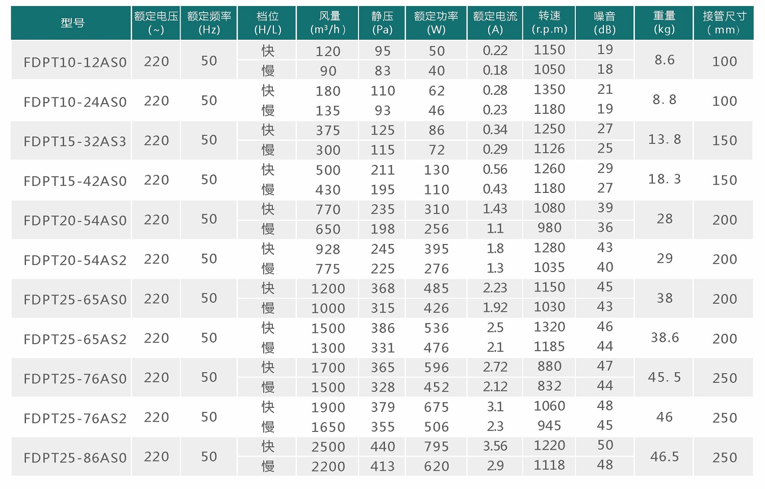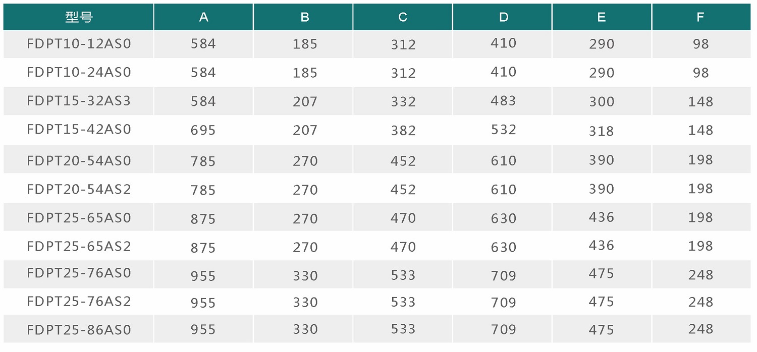 尺寸表(mm)